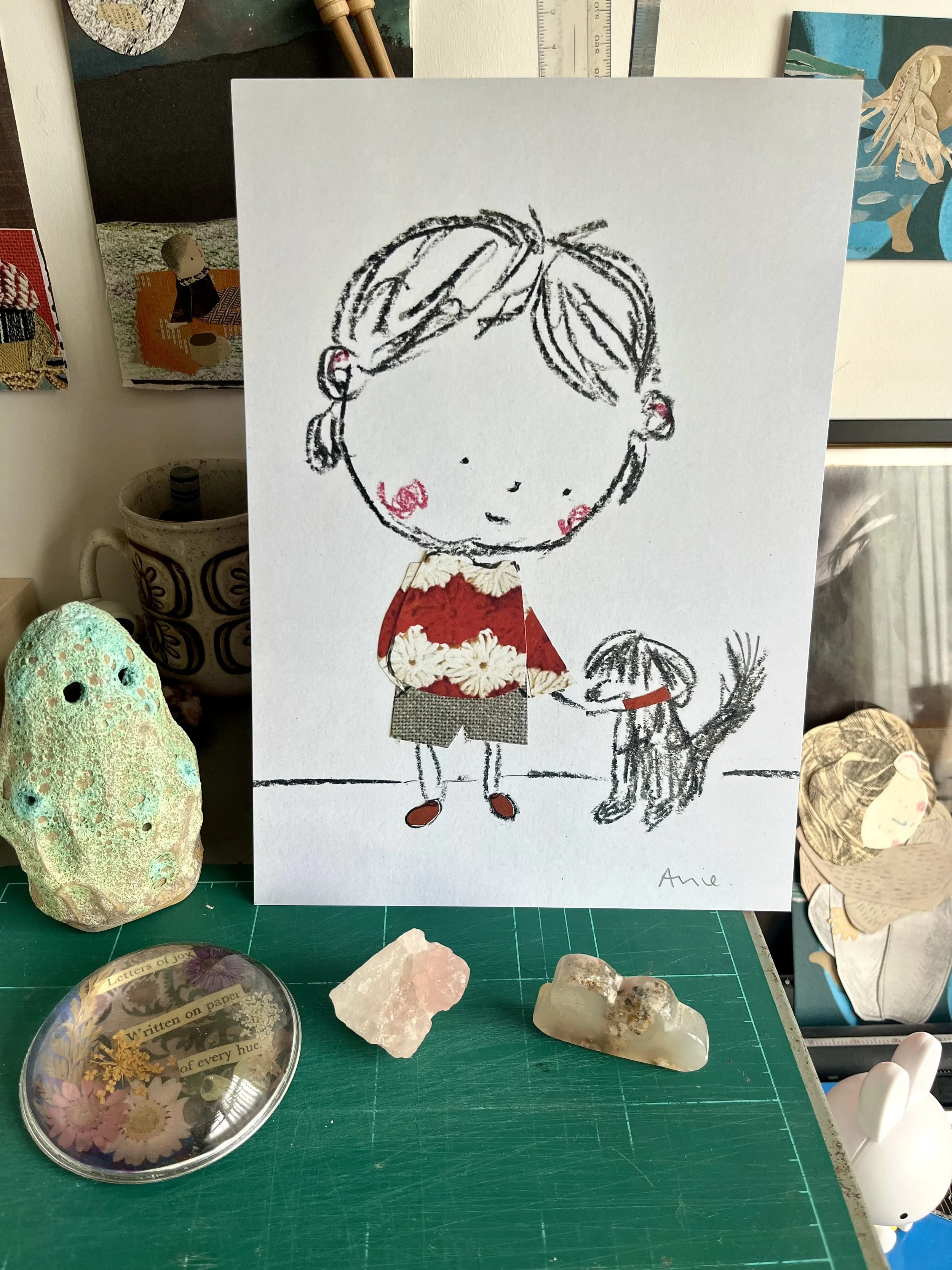 All prices include UK postage and packing - please DM me if buying from outside the UK Deluxe 'Flow' postcard £4.80 Doggy inspired doodle print £12.00 Original collage doodle with jumper £25.00 Original collage doodle with scarf £25.00 Little Collage Pack from £6.00 Doggy inspired original collage doodle £40.00 I Shine Like The Sun - signed copy + Original collage doodle! £20.00 Sold out Animalphabet A3 Giclee Print £35.00 Monday's Child - Original Collage £42.00 Flower Crown - original collage £47.00 Sold out Experimental A4 Riso Print ( Limited Run) £10.00 Big One Little One - Greetings Card (A6) from £3.50 Making Faces A3 Print £35.00 A Bit of a Muddle - Greetings Card ( A6) from £3.50 Set of 6 Cards ( 3 designs) £18.00 Awkward! - Greetings Card from £3.50